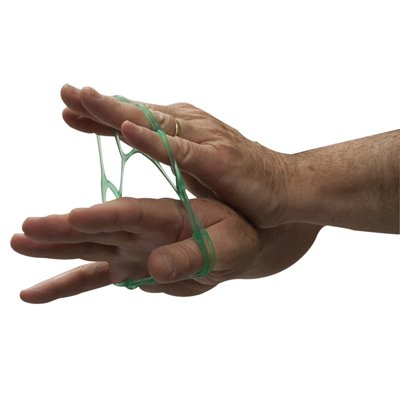 Studio : Fabrication Enterprises Publisher : Fabrication Enterprises Binding : Misc. Product Description CanDo Hand web is great for tennis elbow. Use to strengthen digit and forearm extensors, for intrinsic hand strengthening exercises, muscle re-education for thumbs, and to restore dynamic thumb stabilization. Exercisers are available in 5 progressive color-coded levels of resistance. From lightest to heaviest: yellow, red, green, blue and black. 0