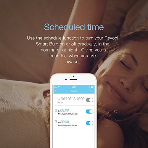 Revogi Smart Color LED Bulb LTB211 RGBW Dimmable Bluetooth 4.0 Low Energy Wireless Lightbulb, Android 4.3+ iOS 6+, E26, 8 Watt (60 Watt Replacement), Energy Class A+ Light, Schedule, Anti-Burglar Mode