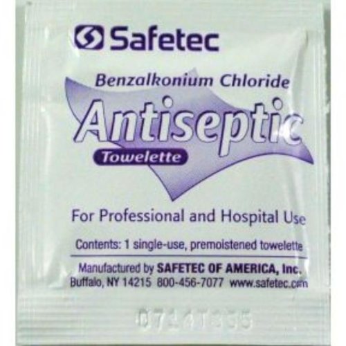 Studio : DDI Publisher : DDI Binding : Misc. Product Description Features. Safetec Benzalkonium Chloride Antiseptic Towelette. 1 single use premoistened towelette. Antiseptic cleansing of face. Hands and body to decrease bacteria on skin without soap and water. Case of 1000 0