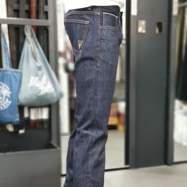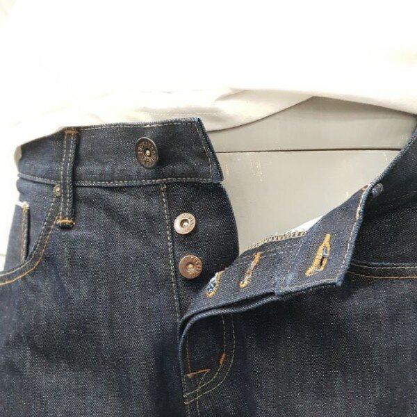 허리를 잡아주는 묵직한 버튼과 수축에도 문제없이바지의 모양을 단단하게 잡아주는 버튼 플라이가 적용!버튼 하나하나에 로그가 새겨져 고급스러움을 더햇다.셀비지의 진가를 보여주는 바지 밑단부분은기장을 한번 길게 접어도 좋고 무심한듯 두세번 말아접어도 완전 좋아요~!!