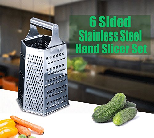 6 Sided Stainless Steel Slicer Set, For Cheeses, Parmesan, Vegetables - Kitchen Grater, Handle Zester.