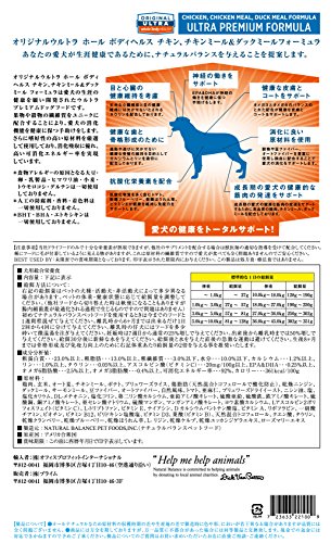 原材料:鶏肉、玄米、オート麦、チキンミール、ポテト、ブリュワーズライス、鶏脂肪(天然混合トコフェロールで酸化防止)、乾燥ニンジン、ダックミール、サーモンミール、豆ファイバー、オートファイバー、自然風味、トマト、亜麻仁、ブリュワーズドライイースト、ニシン油、塩、塩化カリウム、DL-メチオニン、塩化コリン、第二リン酸カルシウム、亜鉛アミノ酸キレート、硫酸亜鉛、硫酸鉄、鉄アミノ酸キレート、硫酸銅、銅アミノ酸キレート、亜セレン酸ナトリウム、硫酸マンガン、マンガンアミノ酸キレート、ヨウ素酸カルシウム、Lアスコルビン2ポリフォスフェイト(ビタミンC)、L-トリプトファン、ビタミンE、ナイアシン、Dカルシウムパントテン酸塩、ビタミンA、リボフラビン、一硝酸チアミン、ビオチン、ビタミンB12、ピリドキシン塩酸塩、ビタミンD3、葉酸(ビタミンB)、天然混合トコフェロール、クエン酸、タウリン、乾燥クランベリー、乾燥ブルーベリー、乾燥ほうれん草、L-リジン、乾燥ケルプ、乾燥ユッカシジゲラエキス、ローズマリーエキス