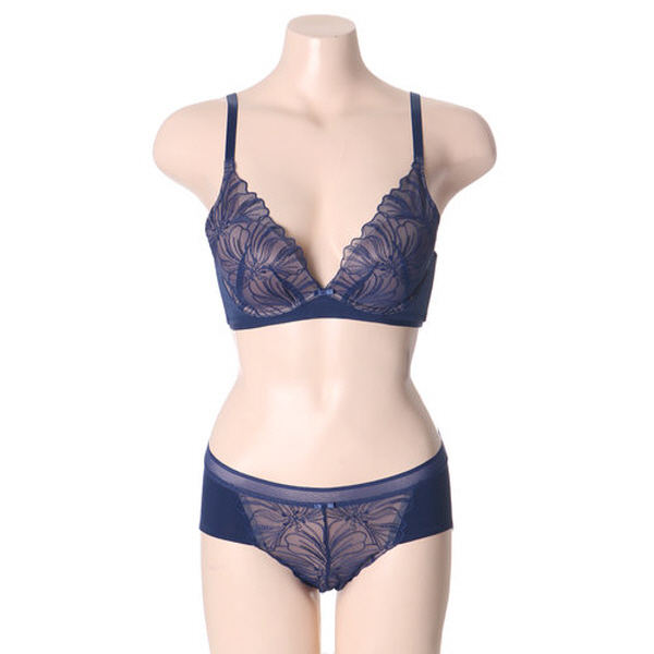 팬티는 힙스터 스타일로 가운데부분에 브라와 같은 플라워자수가 있으며