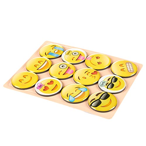 PACK OF 12: This fun set of novelty emoji magnets are ideal for attaching to your refrigerator, metal cabinet, key locker, magnetic calendar or your magnetic whiteboard or wall organizer