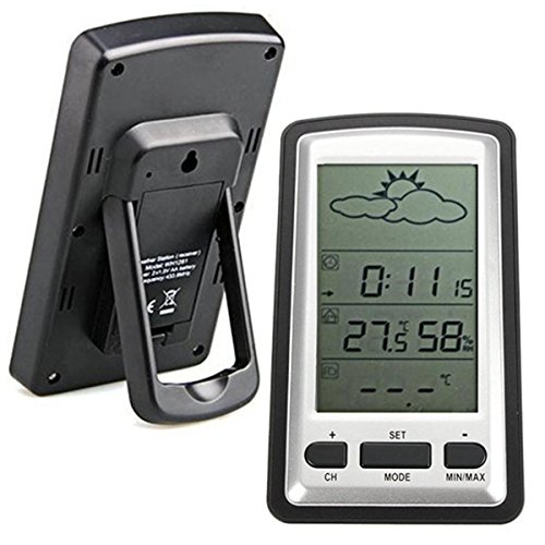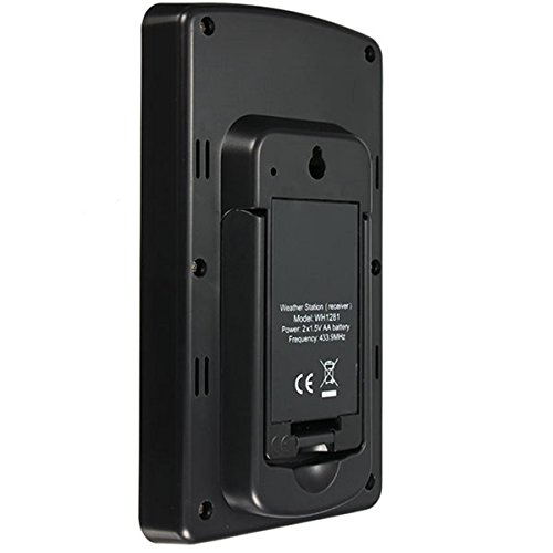 -. Feature : Designed for everyday use in the home or office, the weather forecast displays weather trend depends on the air pressure tendency, sunny, partly cloudy, cloudy, rainy and storm warning / Indoor Wireless Weather Station: Display Weather Forecast, Time (12/24 hours), Indoor Temperature, Indoor Humidity and Outdoor Temperature on the big LCD screen with LED backlight. / Outdoor Wireless Sensor: Display the Outdoor Temperature on the small LCD screen also, it is convenient for you to get the temperature in garden, the max transmission distance in open filed between the weather station and the outdoor sensor is 100 me / Thermo sensor:Measures temperature and transmits data to the monitor via 433Mhz signals. / Weather forecast:weather forecasting symbols showing forecast and weather tendency symbols.