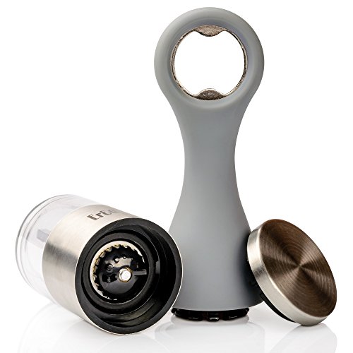 - PEPPER GRINDER & BOTTLE OPENER 2-IN-1. How often do you find yourself looking for a bottle opener when everything else is ready for a party? You have to search for it, or open a bottle with whatever is nearby. For the first time, we have combined two useful things into a single one for a kitchen and a dinner table: a salt pepper mill and a bottle opener! It will save you space in the kitchen. Salt and Pepper Grinder is very comfortable your hand, it is easy to rotate, easy to disassemble.