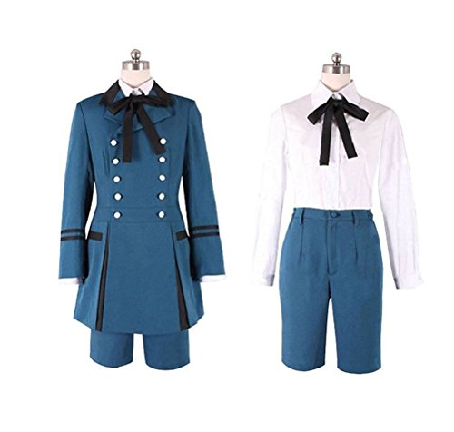 -. Feature : Blue Suit Womens Mens Unisex Outfits Cosplay Costume / Include: long jacket, shirt, shorts, bowknot / Material: uniform cloth, cotton / Please tell us your measurements,like your weight,height,chest,waist,hips,shoulder width and pants length,if you want custom made. / Standard Shipping:7-15 working days via USPS.Expedited Shipping:3-5 working days via DHL/UPS.