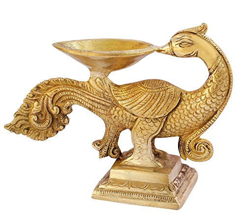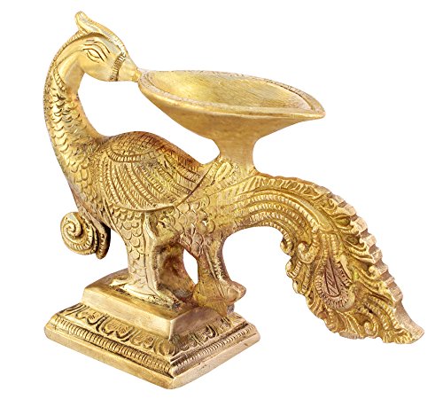 ITOS365 Brass Aarti Diya Oil Lamp for Puja Peacock Home Décorative Religious Gifts, 6.5 Inches