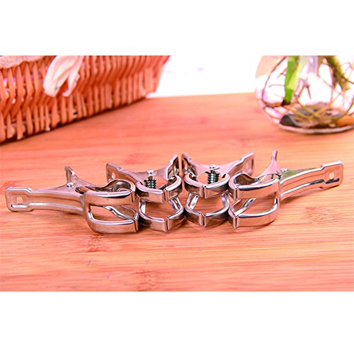 Beach Towel Clips Stainless Steel- GreForest sunbed towel clips 5 Pack Jumbo Size Stainless Steel Beach Towel Holder Clips Strong Windproof Widely Used for Thick Item Hanging, Beach / Pool Chairs
