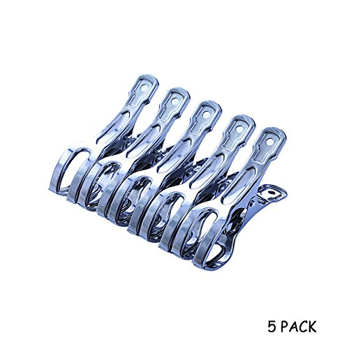 - 4. 5 Pack for your daily use: 5 pack enough for your daily use - Great for beach, patio, cruises, pool and camping. Best for hanging towels / cloth to dry or keeping blankets in place on your leisure chairs. Opening chip on our clip can also be used to fix the hanger on the clothesline to keep it anti dropping