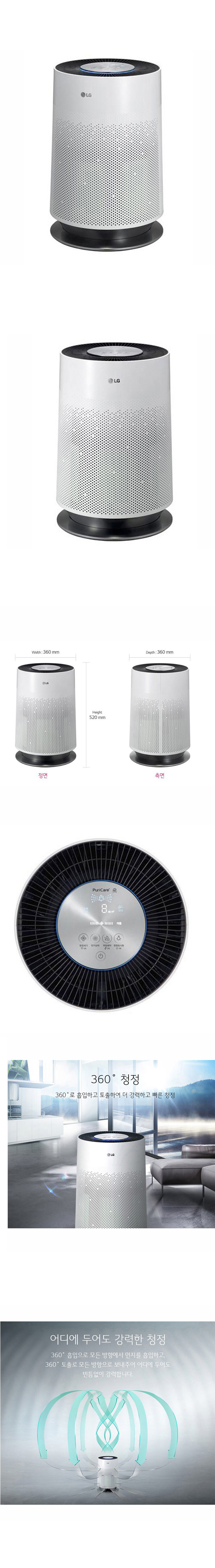 LG Electronics AS161DAW PuriCare Air Cleaner Washer Antibacteria Smog Deodorization Humidifier Super Ionizer White 220V