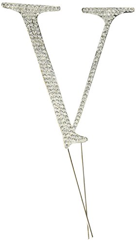 Unik Occasions Collection Crystal Rhinestone Wedding Cake Topper, Large, Letter V, Silver