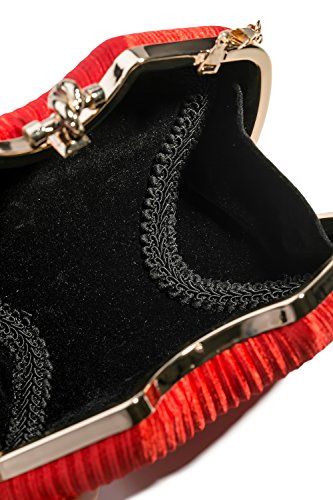 Everyone likes beautiful and trendy handbags. Beautiful handbag can transform an outfit from being simply nice to being exquisite. To find a stand-out handbag that will be the envy of every woman and go well with many outfits is no mean feat. And we are here to help you. This is a gorgeous little evening bag in made in the shape of the shell. The surface is covered with pleated satin taking it to the heights of the elegance. Soft, long-lasting satin is a timeless fabric choice and the muted color add to the timeless style of the classics. The elaborate twist lock clasp is styled to look like a golden knot. The golden frame contrast nicely with the rich color of the satin. A gorgeous little handbag of excellent quality which would be perfect to accessorize an evening gown but equally would add a dash of something special to a trendy modern outfit. Perfect gift. All metal parts have high resistance to rust, corrosion, oxidation and tarnishing so your minaudiere clutch will shine as a new one even after years in use. The hard box clutch comes with an optional crossbody chain strap. It gives you a choice to toss your purse over the shoulder and free your hands. Otherwise tuck the chain into the clutch and keep this shiny little purse in your hands. Don't be fooled into thinking that this evening purse is too tiny for your needs. Small and neat by sight the hard case is spacious enough to keep your essentials: a cell phone, home and car keys, an ID card, credit cards, some money and make-up. As the clutch wallet fits the dimensions of most big screen smartphones, you can take along with you an iPhone 6 Plus, iPhone 7 Plus or another gadget of the same or smaller size.Feature