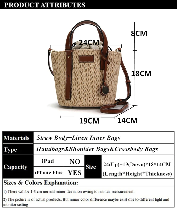 Main Material:Straw Body + Linen Inner Bags