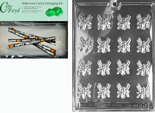 Cybrtrayd MdK25H-H061 Halloween Chocolate Mold with Chocolate Making Supply Kit, Bite Size Spiders, 25 Cello Bags