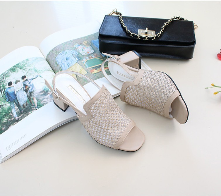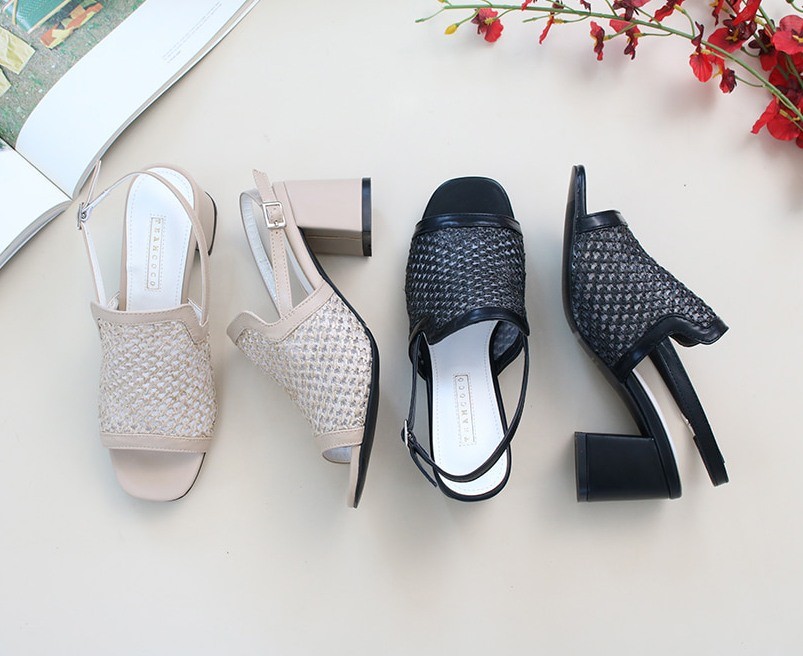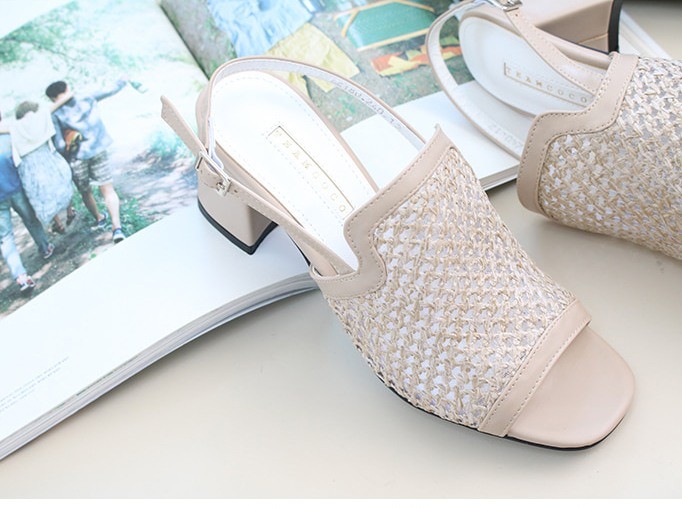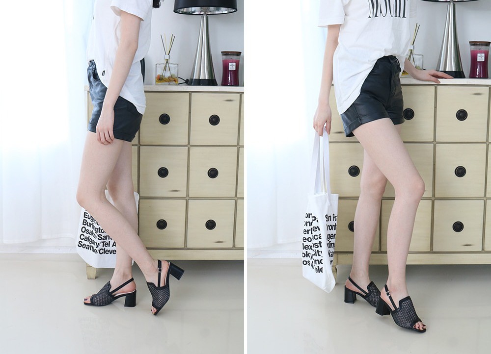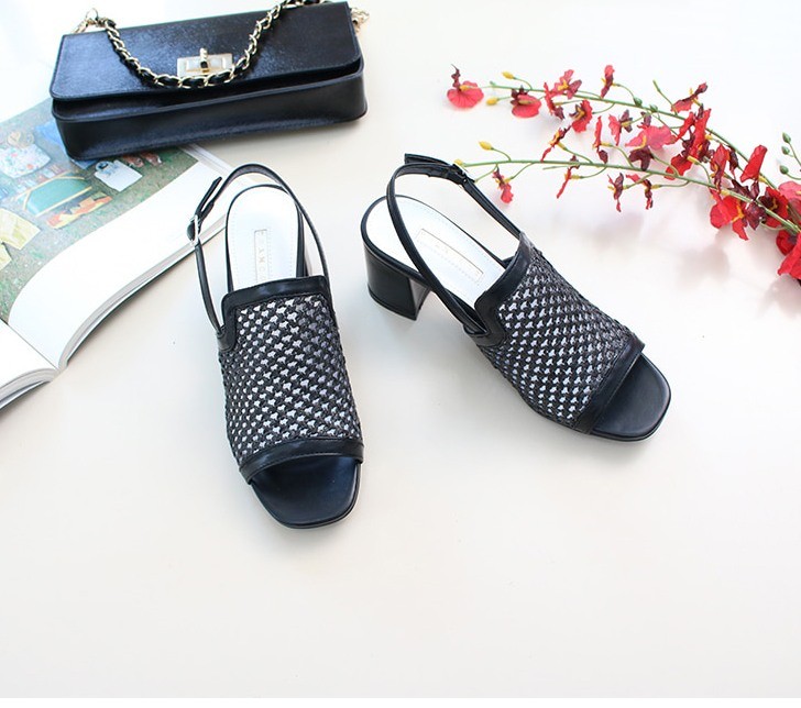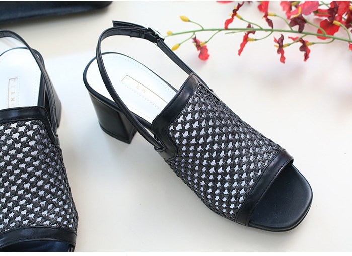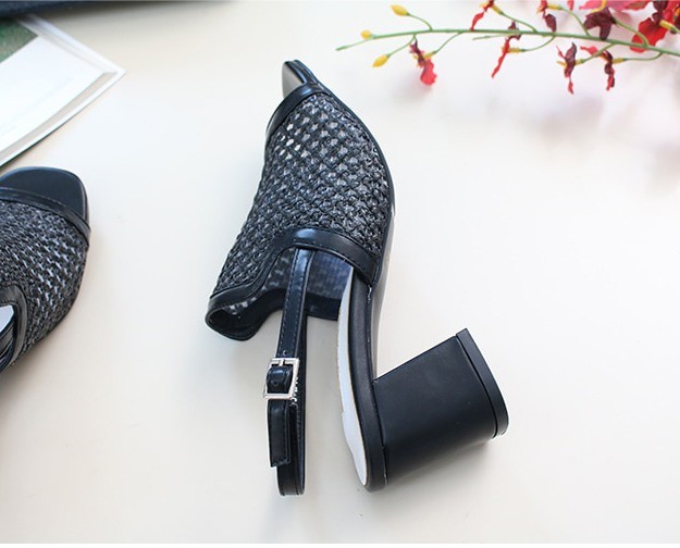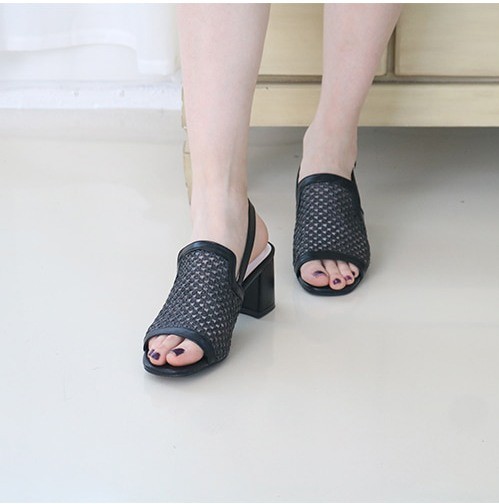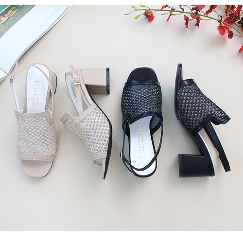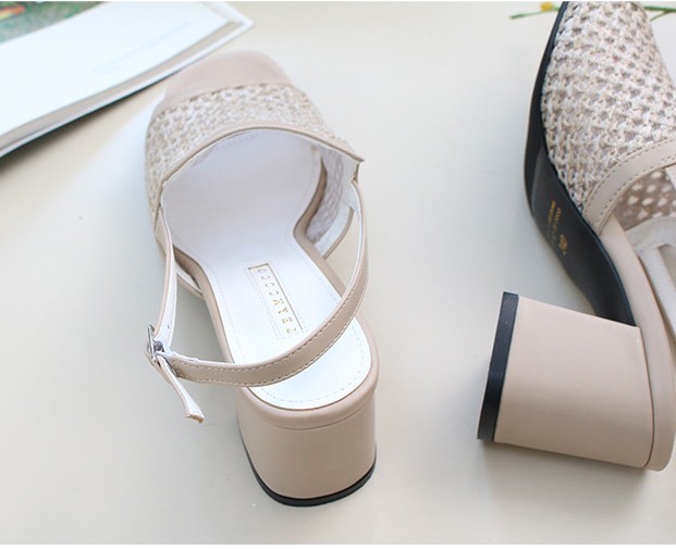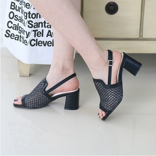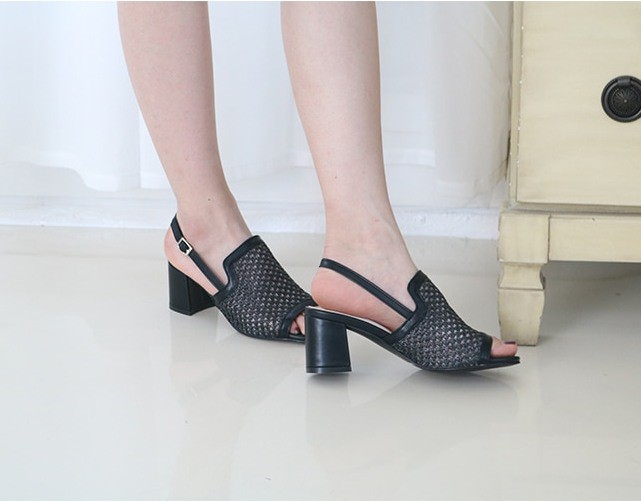 商品名:サンダル レディース 太ヒール スリングバック メッシュ チャンキーヒール 2018 春 ファッション 靴 婦人靴
