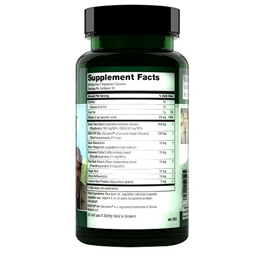 Green Tea is one of the world's most beneficial botanicals. Green tea leaves contain natural compounds called polyphenols that have been heavily researched in scientific journals. Green tea polyphenols include catechins. One catechin, EGCG, has demonstrated high antioxidant activity. The Green tea showcased in this formula delivers a high 50% EGCG content with less than 1% caffeine.