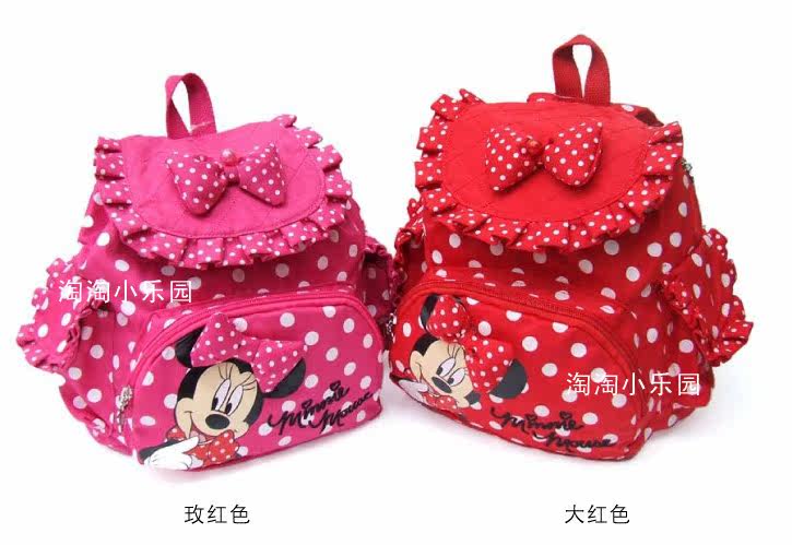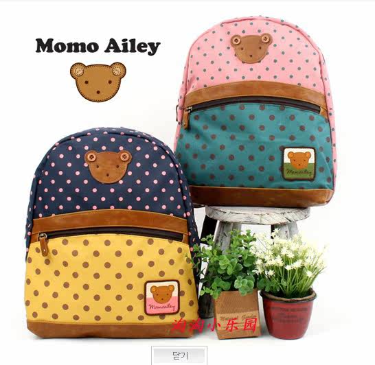 ***** B shall bear Polka Dot Nylon + PU leather stitching children's school bags