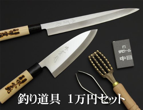 원본상품명: 實光包丁 釣り具 セット 釣り特集 1万2千円セット 〔出刃 刺身 うろこ取り 骨?き サビト?ル〕