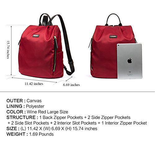 CLEARANCE Canvas Backpack Purse Travel Water Resistant Large Lightweight School Backpacks for Women Nylon Wine Red