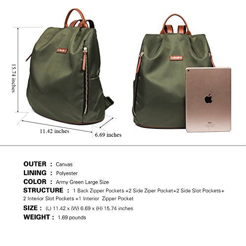 [CLEARANCE]CALLAGHAN Canvas Backpack Purse Large Lightweight School Backpack for Women Army Green