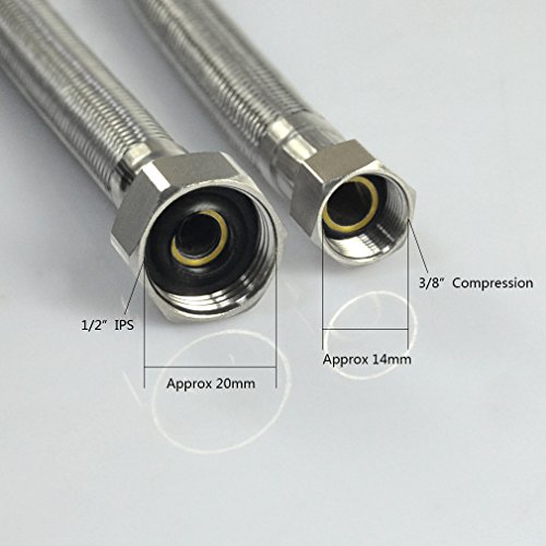 PHASAT 24-Inch Long Faucet Connector, 3/8" Female Compression Thread x 1/2" I.P. Female Straight Thread Braided Stainless Steel Supply Hose, QTY 1