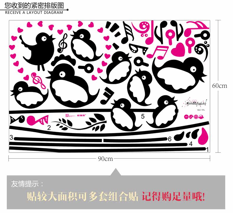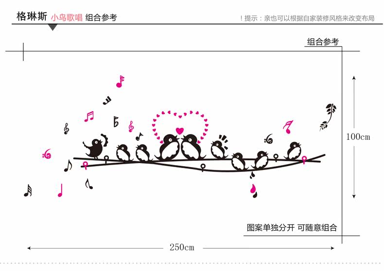 【品牌】格林斯 【名称】小鸟歌唱 【样式】平面墙贴 【单位】套
