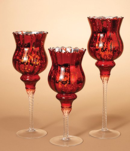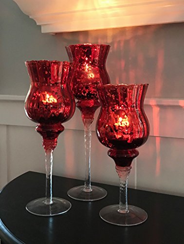 Product DescriptionLarge Red Mercury Glass Candle Holder Set of 3 - 15.5, 13.5 and 11.5 Inches High0