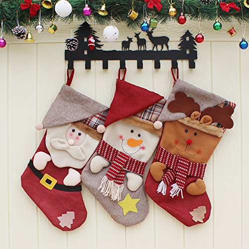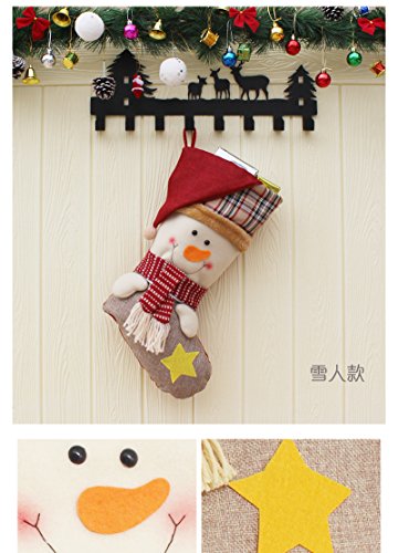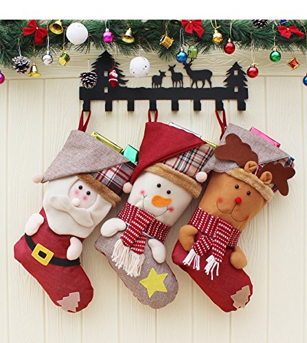 - HIGH QUALITY AND DURABLE: Made of quality non-woven fabric.3D plush Santa,snowman,reindeer character designs that almost come to life with a knit border. Sturdy hanging loop to ensure you can hang it safely and easily.