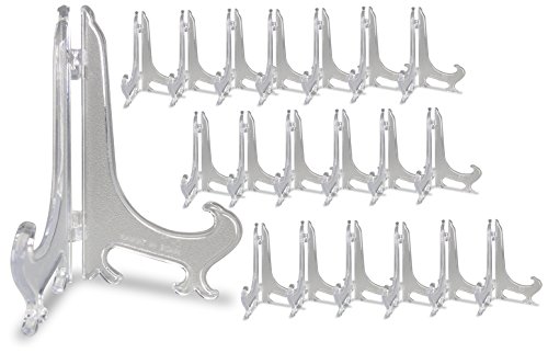 - CLEAR PLASTIC STANDS. What a great bulk set of easels. They are perfect for any event you are hosting. Use them in your classroom to display your students art.