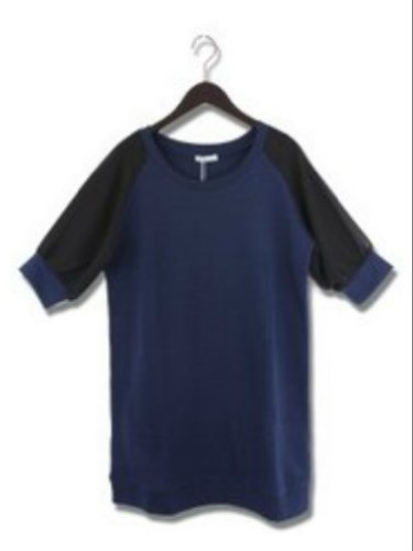 -. Title : 裏毛x無地シフォン袖切り替えプルオーバー F ネイビー