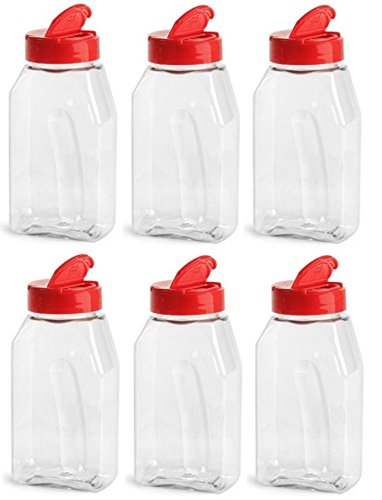 -. Brand : Nakpunar -. Color : Clear -. Feature : Nakpunar brand high quality 16 oz Clear PET Spice Jar/Bottles with Red Dispenser Cap / Each jar hold 16 oz and rectangular shape with rounded corners make these jars perfect to keep and organize your spices. / 2-1/4" x 3" x 6" high / The red cap comes with Sealed for freshness seal and keep your spices airtight for longer shelf life. One side of the dispenser cap has 3 hole and other side has big opening. / These set is for 6 jars and 6 caps. Available in other color caps and volumes too. -. Label : Nakpunar -. Manufacturer : Nakpunar -. Model : NAK16CLRD6 -. MPN : NAK16CLRD6 -. PartNumber : NAK16CLRD6 -. ProductGroup : Kitchen -. ProductTypeName : KITCHEN -. Publisher : Nakpunar -. Size : 16 oz -. Studio : Nakpunar -. Title : Nakpunar 16 oz Clear PET Plastic Spice Jars with Red Dispenser Caps - Set of 6