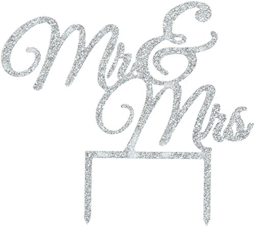 Unik Occasions "Mr. & Mrs." Elegant Acrylic Cake Topper, Silver Glitter