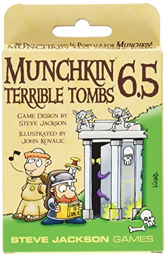 -. Binding : Toy -. Brand : Steve Jackson Games -. EAN : 0837654322963 -. Feature : You didn't think Munchkin 6 - Demented Dungeons was the end of the adventure, did you / We've gone back to our roots with 20 more Dungeons to explore and 16 new Portals to send you there. / Munchkin 6.5 - Terrible Tombs may be used on its own or combined with Demented Dungeons (or any other expansion with Dungeon cards) for a truly insane adventure. / 20 double-sized cards, 16 standard-sized cards. / Game Design by Steve Jackson, Illustrated by John Kovalic. -. Genre : strategy -. IsAdultProduct : 0 -. ItemPartNumber : 1541SJG -. Label : Publisher Services Inc (PSI) -. Manufacturer : Publisher Services Inc (PSI) -. Model : 1541SJG -. MPN : 1541SJG -. PackageQuantity : 1 -. PartNumber : 1541SJG -. ProductGroup : Toy -. ProductTypeName : TOYS_AND_GAMES -. Publisher : Publisher Services Inc (PSI) -. ReleaseDate : 2016-04-13 -. Studio : Publisher Services Inc (PSI) -. Title : Munchkin 6.5 - Terrible Tombs -. UPC : 837654322963 -. Warranty : No Warranty