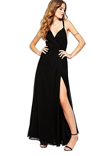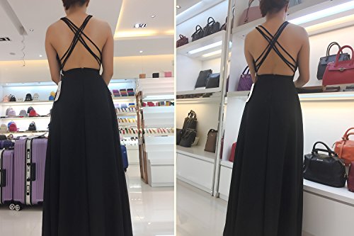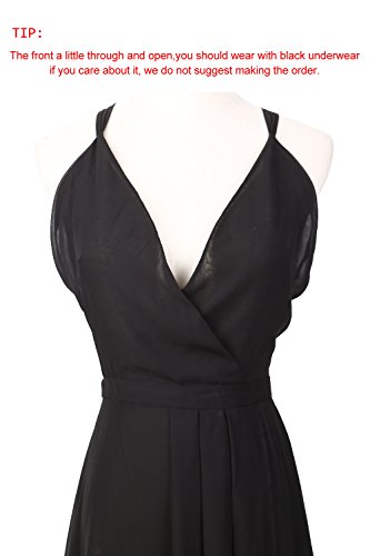 DONWORD Women's Chiffon Backless Maxi black Sexy V Neck Halter Sling Long Prom Gown Evening Party Cocktail Dresses