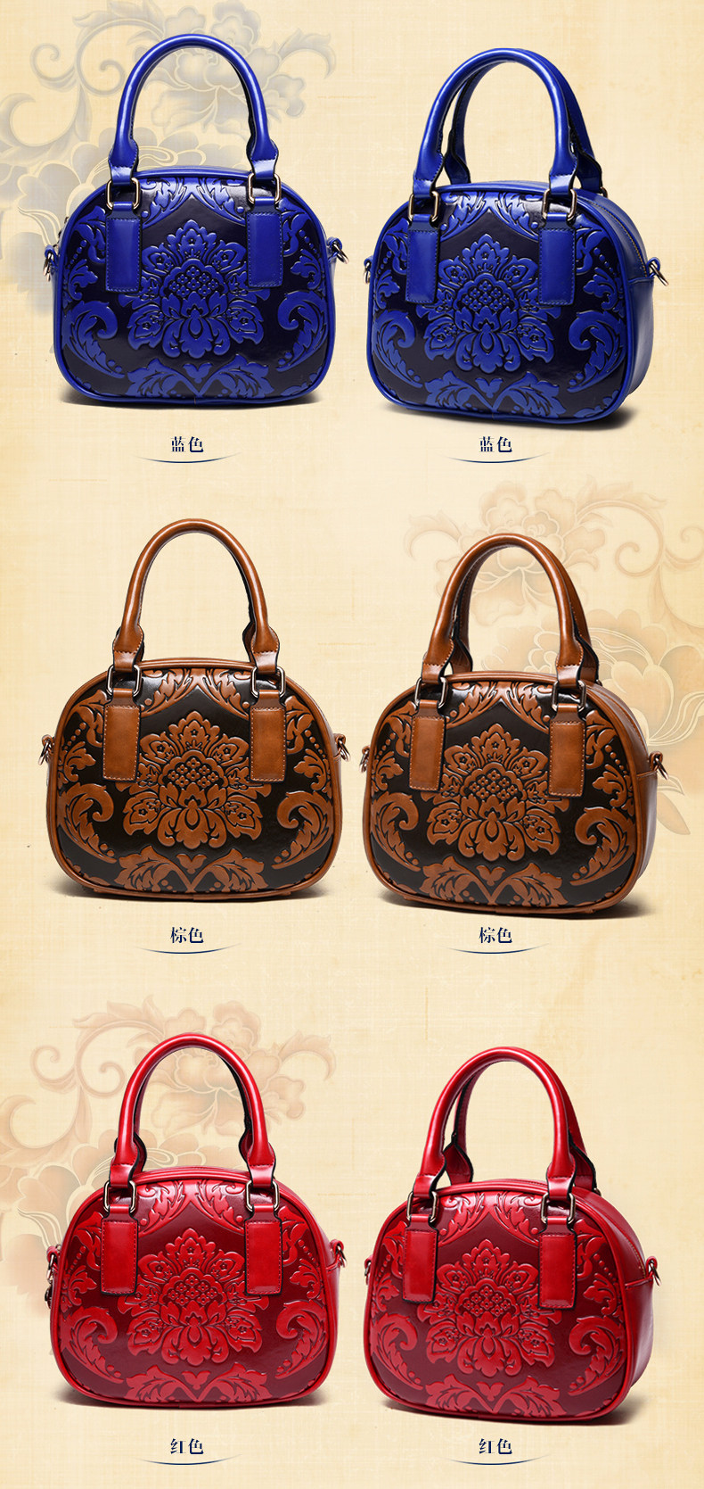 ★Vintage Fashion Women Handbag Shoulder Bag Chinese Style PU Leather Flower Design Toposhine bags