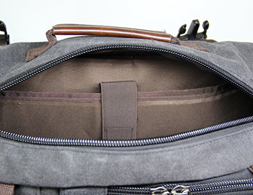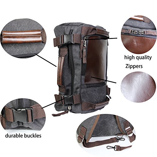 -. Binding : Electronics -. Brand : Coface -. Color : Black -. EAN : 0612409404381 -. Feature : Big Size: 22"x13"x6.5", can fit for 13-14inch laptop or Macebook.Big enough,space saving,easy to carry your necessary.Big Material: Premium quality cotton canvas+ PU leather+hardware Zipper and hook,exclusive look and great touch feeling.Featuring versatile carrying options. / Multi-purpose uses:This bag can be used as duffle/handbag/suitcase/brief case when travelling.Two straps are in a hidden compartment to make this bag a backpack/rucksack/satchel.A detachable shoulder strap can easily turn the backpack into a messenger bag/crossbody bag/shoulder bag.One bag offers at least three different ways of carrying. / Economize your carrying effort:thickened and widened breathable,adjustable,sponge straps,help reduce the load. / This is a removable shoulder strap inside the main pocket, you also carry this bag as a cross body bag, and The main pocket also have a side zipper for your easy packing once you cross pack this back / Useful and spacious with many pockets:Besides main pocket,back zippered pocket there are secret protective compartment,phone pocket,notebook pocket with velcro and pen pocket inside bag. -. Label : Coface -. Manufacturer : Coface -. ProductGroup : PC Accessory -. ProductTypeName : CARRYING_CASE_OR_BAG -. Publisher : Coface -. Studio : Coface -. Title : Canvas Leather Backpacks, Laptop Bag,Vintage Causal Daybacks,Duffel School Travel Rucksack Daypack Backpack for College Travelling, Climbing ,Camping, Hikingpack -. UPC : 612409404381