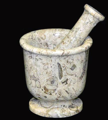 -. Title : Fossil Stone Mortar and Pestle Set - 4 Inch
