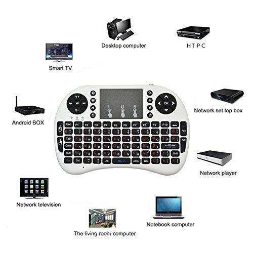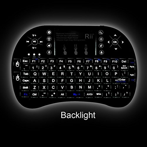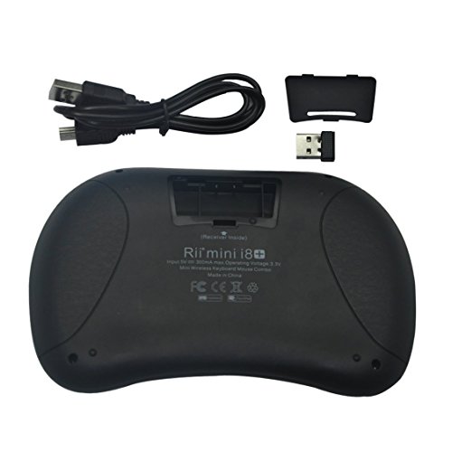 Features:92 keys, 2.4GHz wireless Keyboard with Touchpad. Touchpad DPI adjustable functions. Built-in high sensitive smart touchpad with 360-degree flip design. A new broken in classic Rii Mini i8+ new increased LED backlit function, you can us it in black with LED lighting QWERTY keyboard with multimedia control keys and PC gaming control keys. Auto sleep and auto wake mode. The Ergonomically handheld design is easy to carry and operate. Build-in removable rechargeable Li-ion battery that has longer standby time. Specification : Operating range: 15 meters(MAX), without signal disturbance and no direction limit. Frequency range: 2.403GHZ 2.480GHZOperational voltage: 3.3VCharge Voltage: 4.4V 5.25VModulation: GFSK Layout : US Channel: 78 channels TX Power: less than +5dBmTransmission rate: 1M bit/sec Frequency tolerance: +/-30ppmPower consumption: 55mA(on), 1mA(sleep)Battery Type: Built-in lithium-ion battery Notice : After 3 minutes without any operating will into sleep mode, press any key about 1s to wake up. Package Including:1 Wireless keyboard1 Wireless receiver1 Charging data cable1 User manual Note: If your device without USB 2.0 jack, you need buy one.
