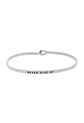-. Title : Rosemarie Collections Women's Inspiring Thin Hook Bangle Bracelet Rhodium Color "Never Give Up"