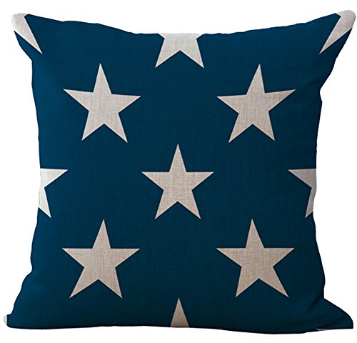 YJ Bear White Five Pionted Star Decorative Pillow Case Cotton Linen Decorative Throw Blue Cushion Cover Home Decor 18 X 18''
