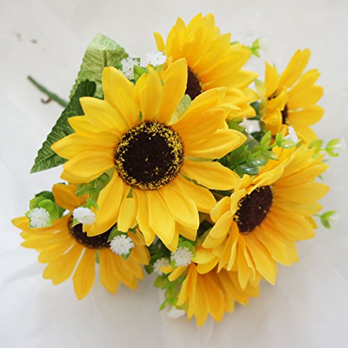 Lily Garden Mini Artificial Sunflower 7-stems Flowers and Baby‘s Breath (1)