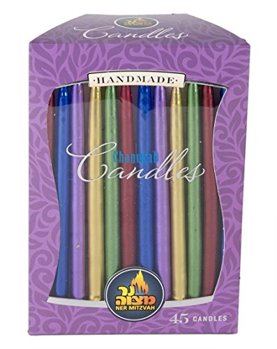 Colorful Metallic Dripless Chanukah Candles - Standard Size Fits Most Menorahs - Premium Quality Wax - Assorted Colors - 45 Count For All 8 Nights of Hanukkah - by Ner Mitzvah