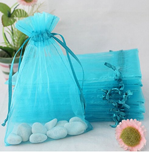 100pcs Turquoise Organza Drawstring Pouches Jewelry Party Wedding Favor Gift Bags 3"X4"