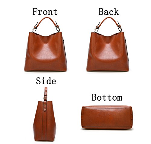 Feature:1.Premium oil wax PU leather, soft, delicate, durable. The handle strap adopt high-grade leather will bear heaviver and comfortable to wear.