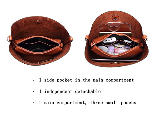 A main generous compartment with an independent detachable small bag, with adjustable strap, can be as a shoulder bag alone.A side pocket in the main compartment for the mobile phone, Internal the small purse with a main compartment, three small pouchs. Large enough to keeping ipad, wallet, magzines, umbrella, camera, cosmetic, mobile phone, documents and other daily accessaries well organized.