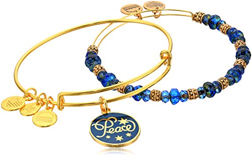 -. Binding : Jewelry -. Brand : Alex and Ani -. Department : womens -. Feature : Infusion is the process where a quality of one thing is imbued into another. When our pieces are adorned with Swarovski® crystals and infused with light, the pure, vibrant rays of the spectrum create a brilliant flare of color unlike the hues found in the natural world. Crystals hold this luminosity in remarkable ways: the crystalline matrix has been said to contain the powerful creative energies of the universe.Details: -. Label : Alex and Ani -. Manufacturer : Alex and Ani -. ProductGroup : Jewelry -. ProductTypeName : FASHIONNECKLACEBRACELETANKLET -. Publisher : Alex and Ani -. Studio : Alex and Ani -. Title : Alex and Ani "Holiday" Peace Set of 2 Charm Bracelet