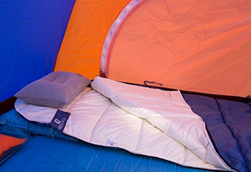 DURABLE and ULTIMATE COMFORT: Our sleeping bags are constructed with a durable, ripstop waterproof shell and baffles that prevent heat leakage. This bag will keep you warm with its high-loft 350g/m2 hollow fiber and soft woven liner. Convenient draw string hood for added warmth around your neck and shoulder. Anti-snag zipper system?double two - way zipper?can open from top or bottom.