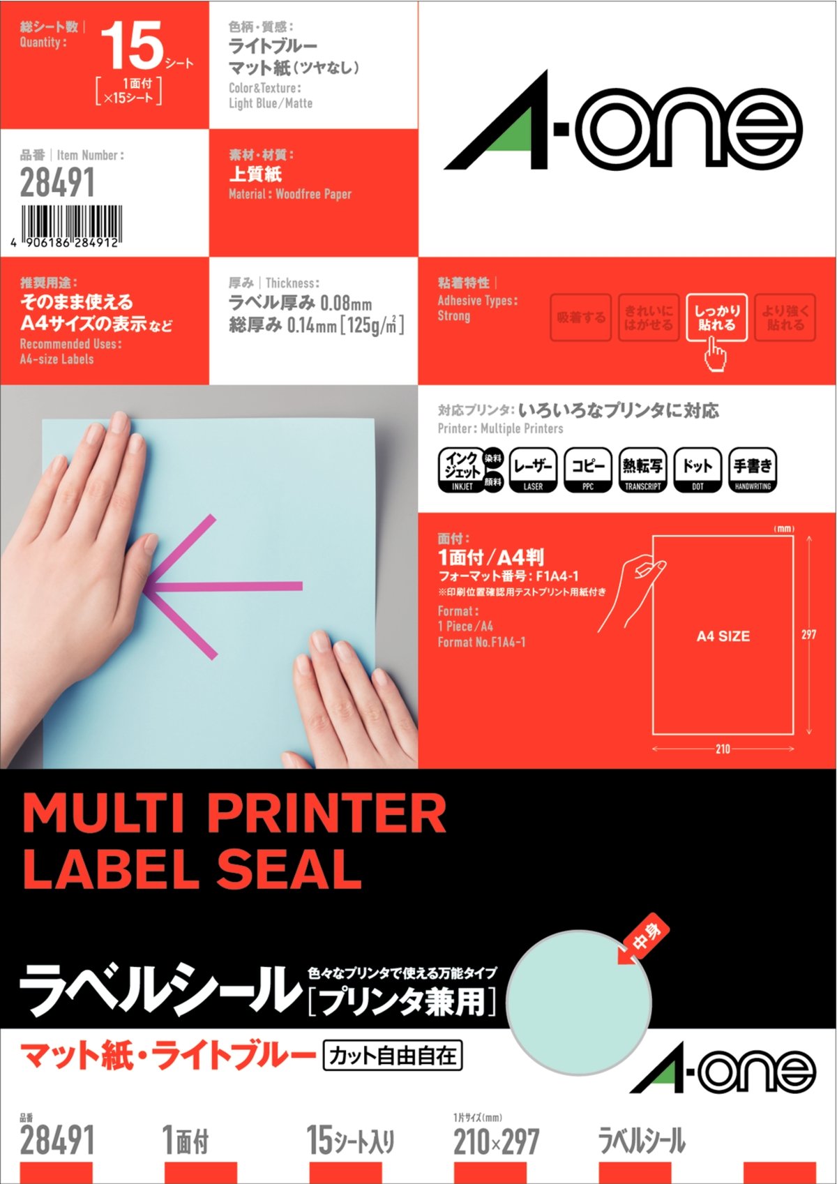 Uncut sheet 15 28491 A4 Size of one side-One (A-one) label seal [printer combined use] matte paper light blue (japan import)