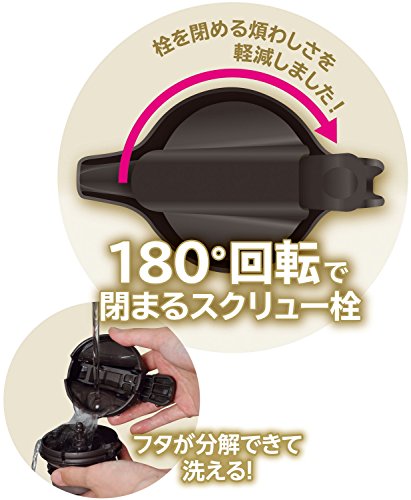 材質:本体内側/18-8ステンレス鋼、本体外側/ステンレス鋼(焼付塗装)、口がね・ハンドル・ふた栓/ポリプロピレン(耐熱温度100度)、開閉レバー/ABS樹脂(耐熱温度80度)、パッキン/シリコーンゴム(耐熱温度220度)